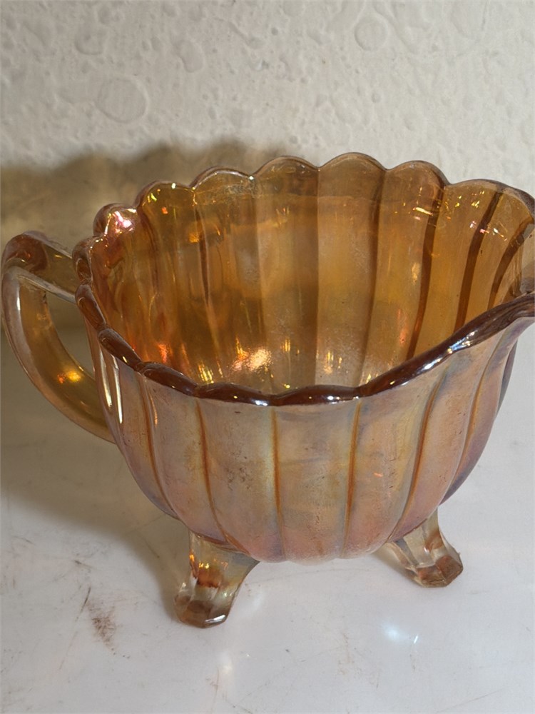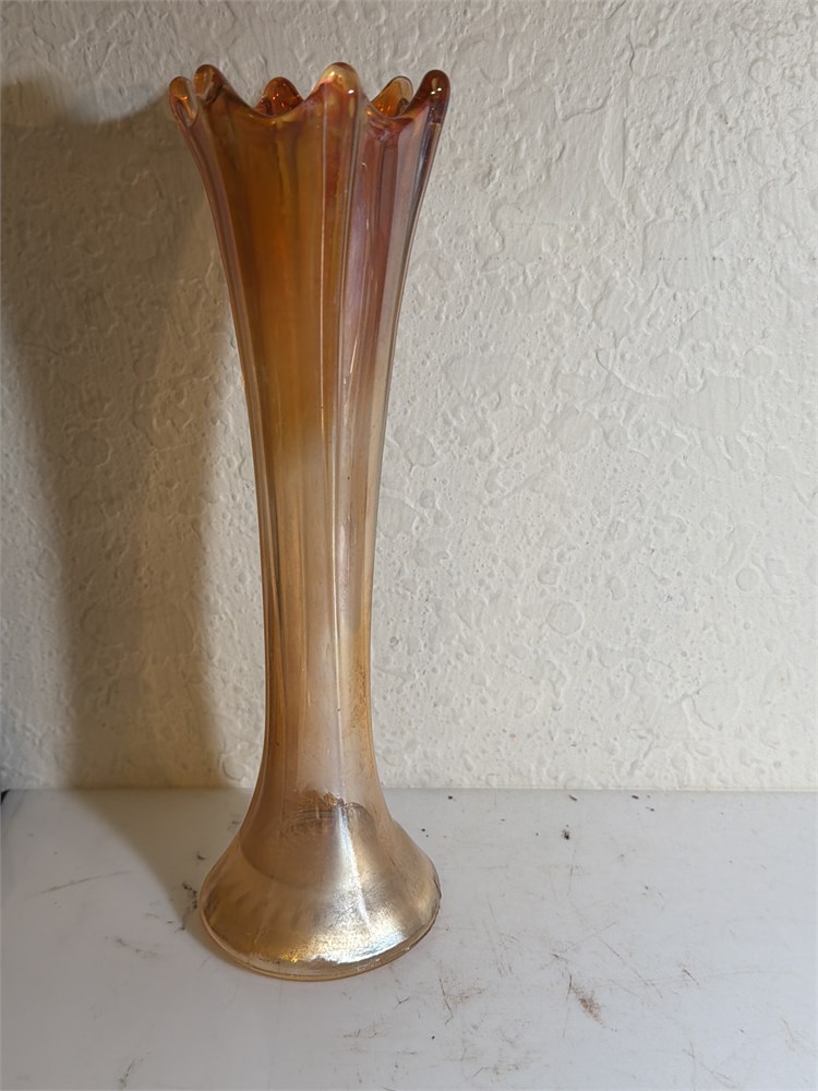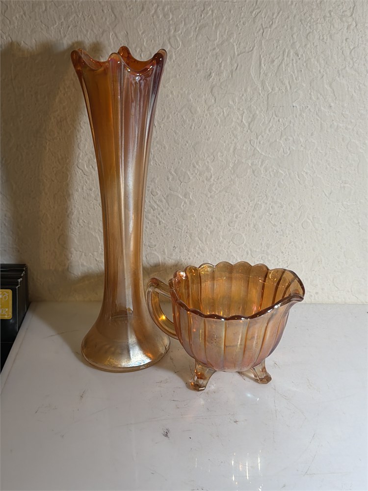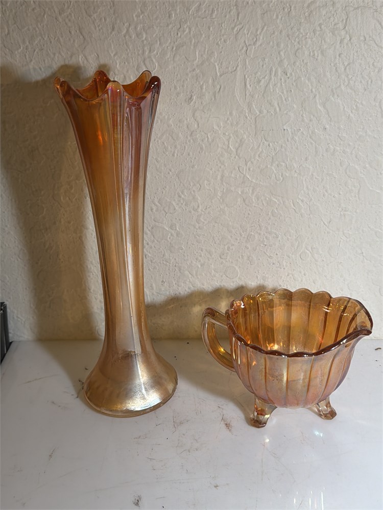 Amber Carnival Glass - small 5 Inch cup & 9 Inch Vase Set (L)