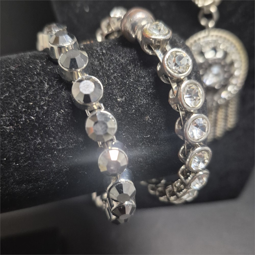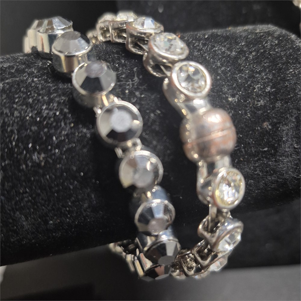 > 2 magnetic silver metal bracelets, one rhinestone / one silver.....magnetic is strong