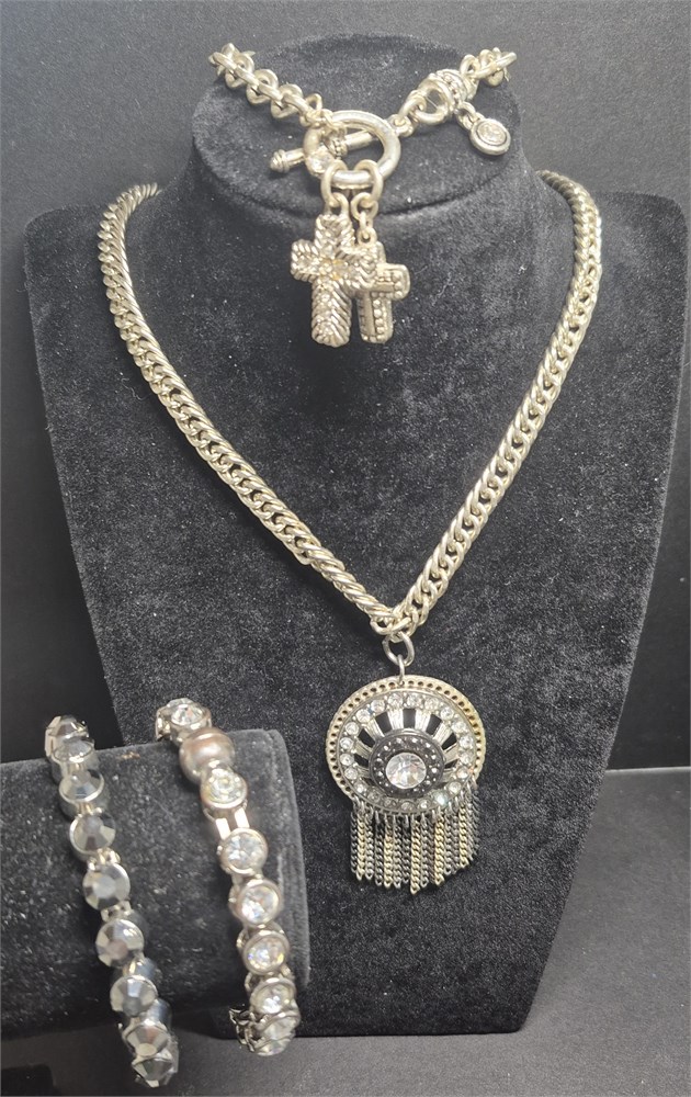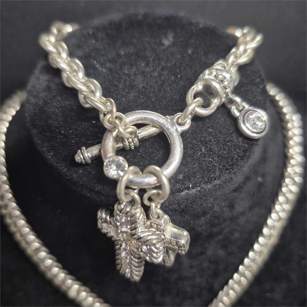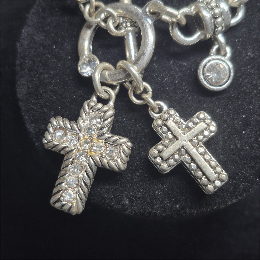 > Cross Bracelet has 2 thick crosses and CX charm w/ pass thru closure