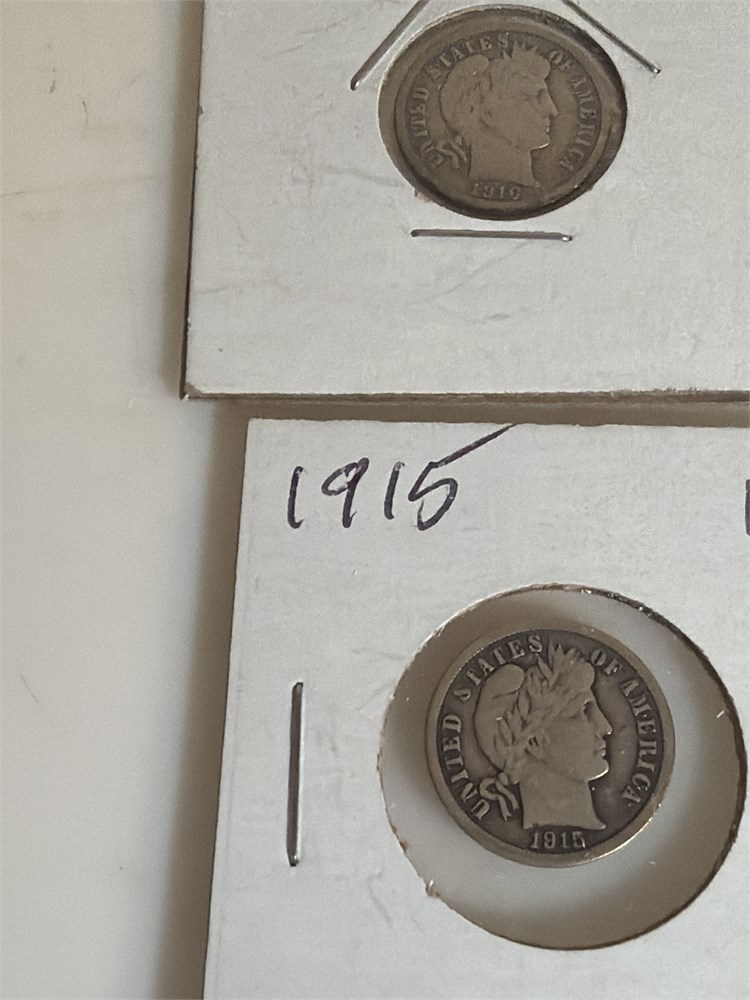 1915 and 1916 barber dimes and very, very nice shape and separate cards