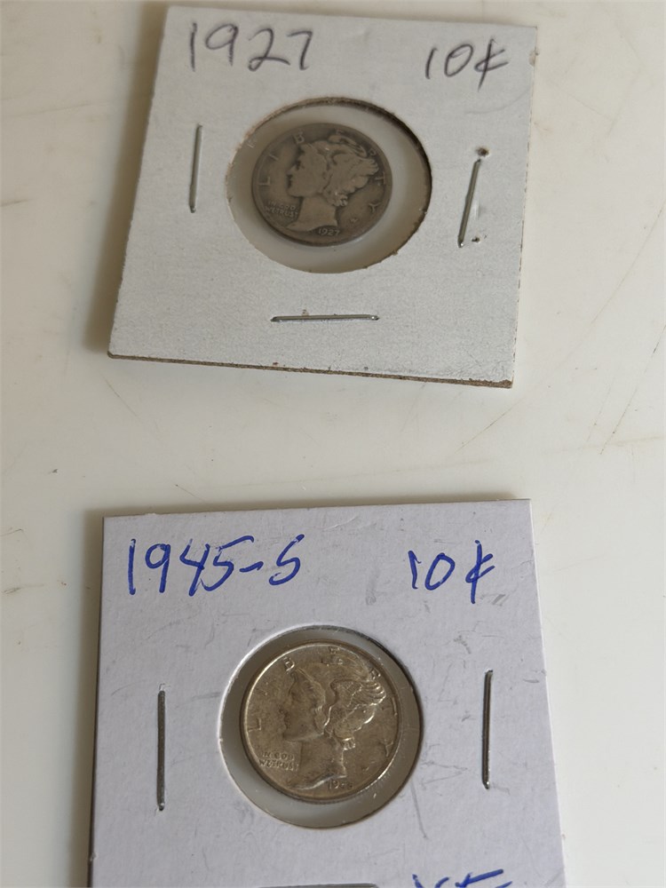 Barber dimes 1945S and 1927  excellent shape