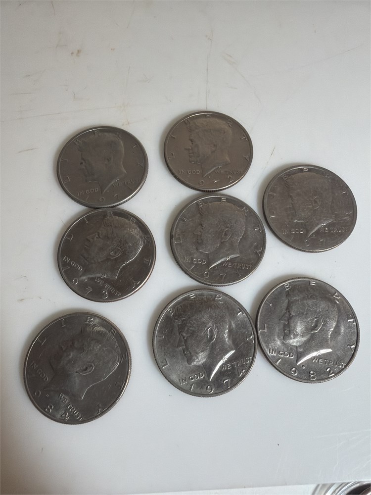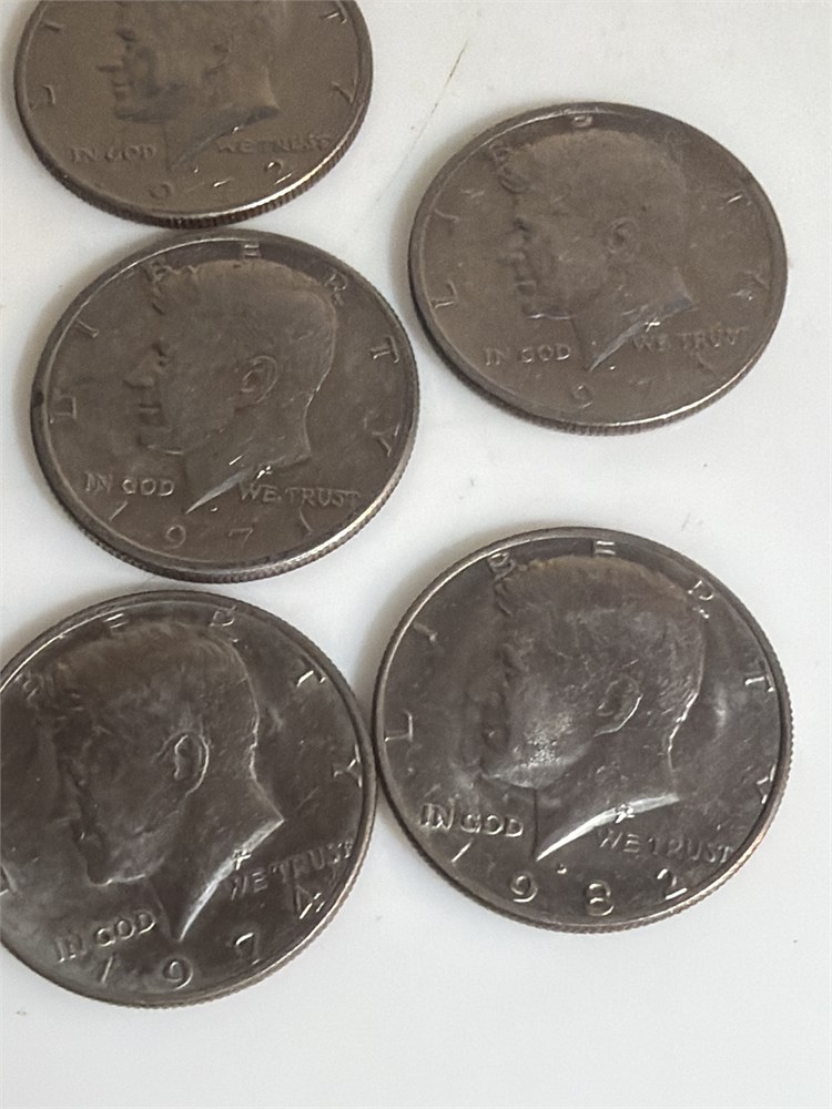1971, 1982, 1974, 1973, 1971 Kennedy half dollars eight total