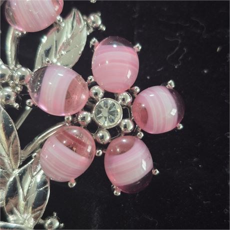 Retired CINDY ADAMS Rhinestone & Striped Art Glass Brooch