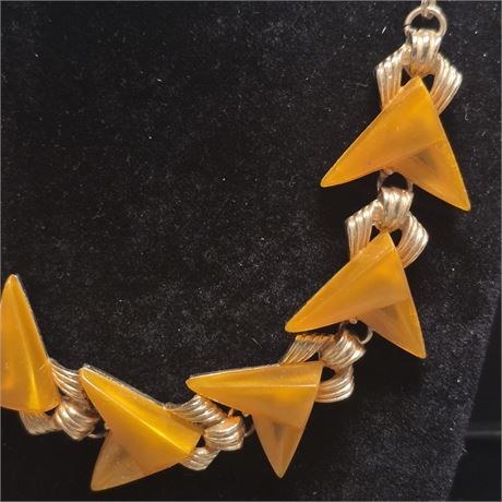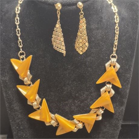 Vintage Butterscotch /gold "V" Necklace & Earrings