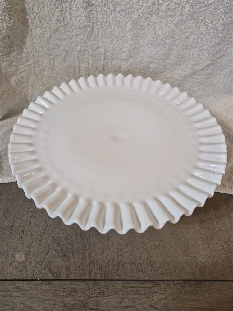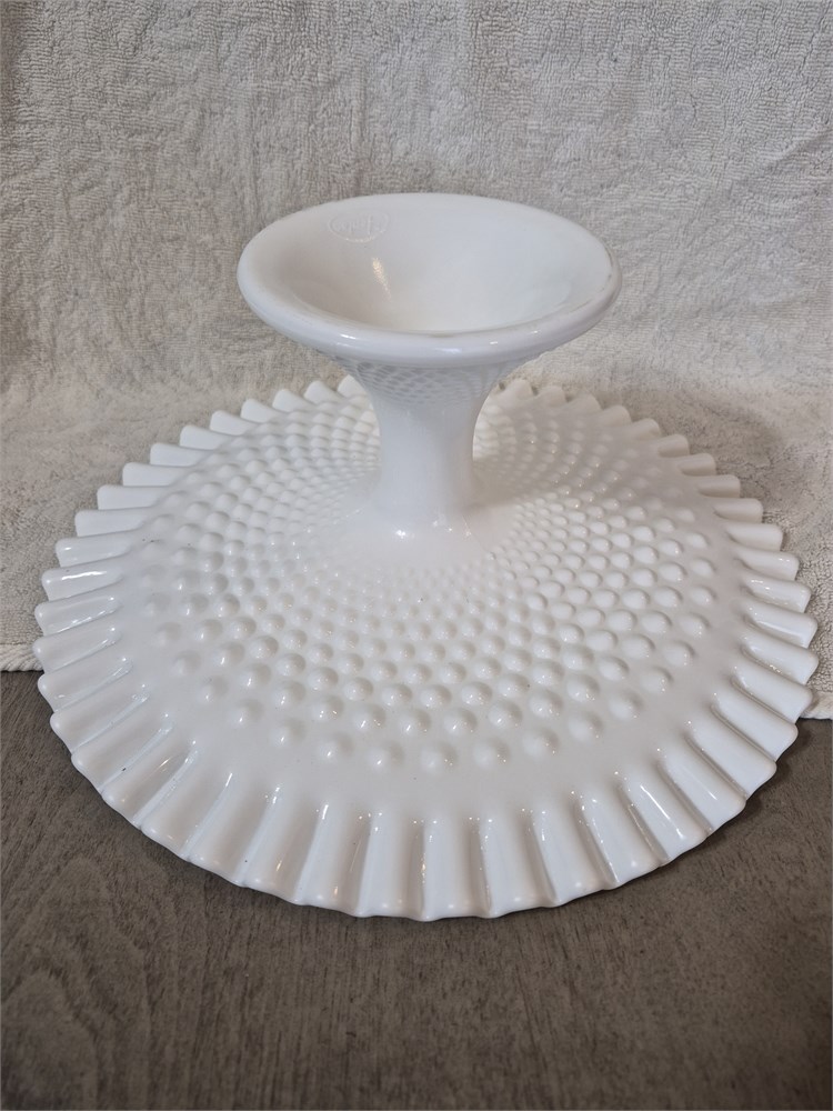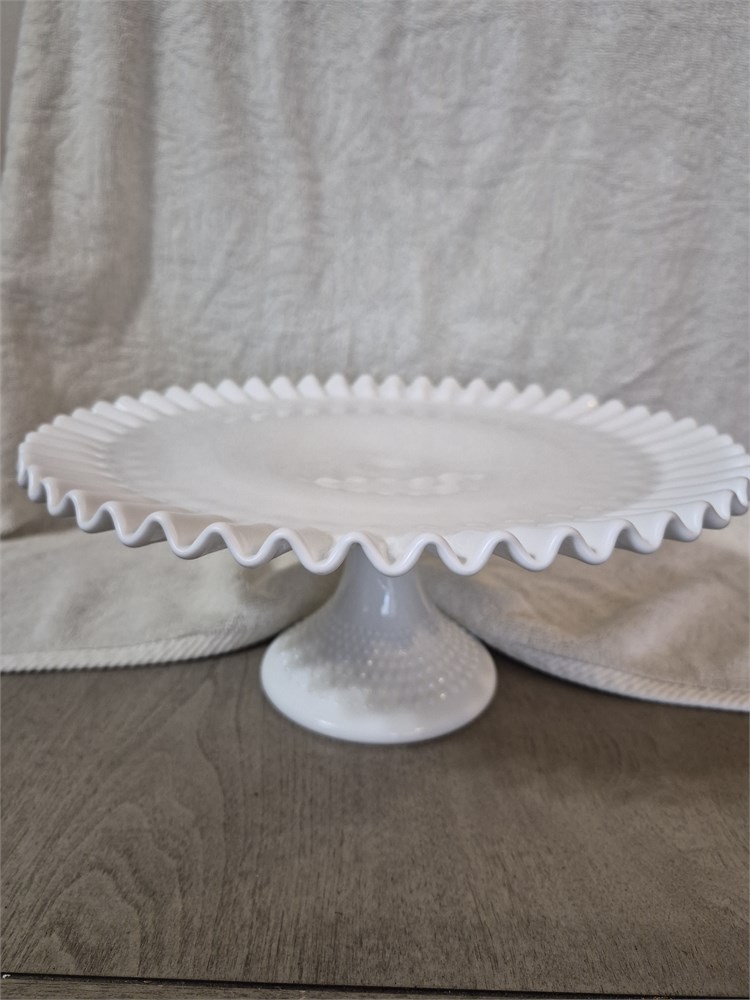 Vintage White Milk Glass Hobnail Pedestal Cake Plated Ruffled Rim 12.5” Fenton