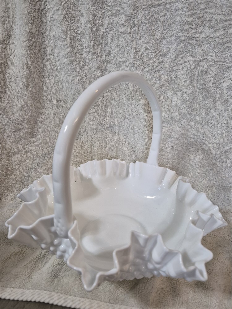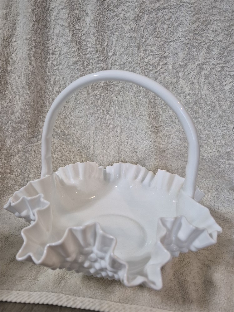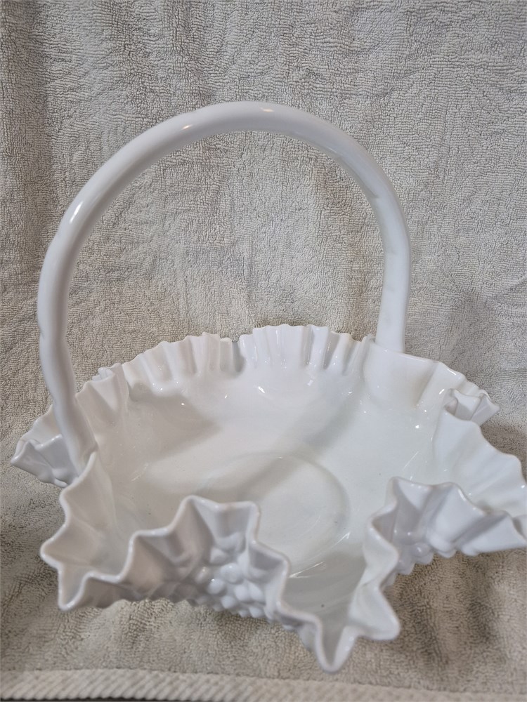 Fenton Hobnail Ruffled Edge Handled Basket