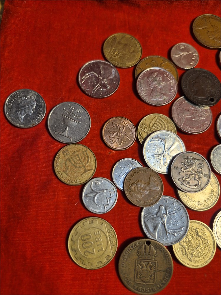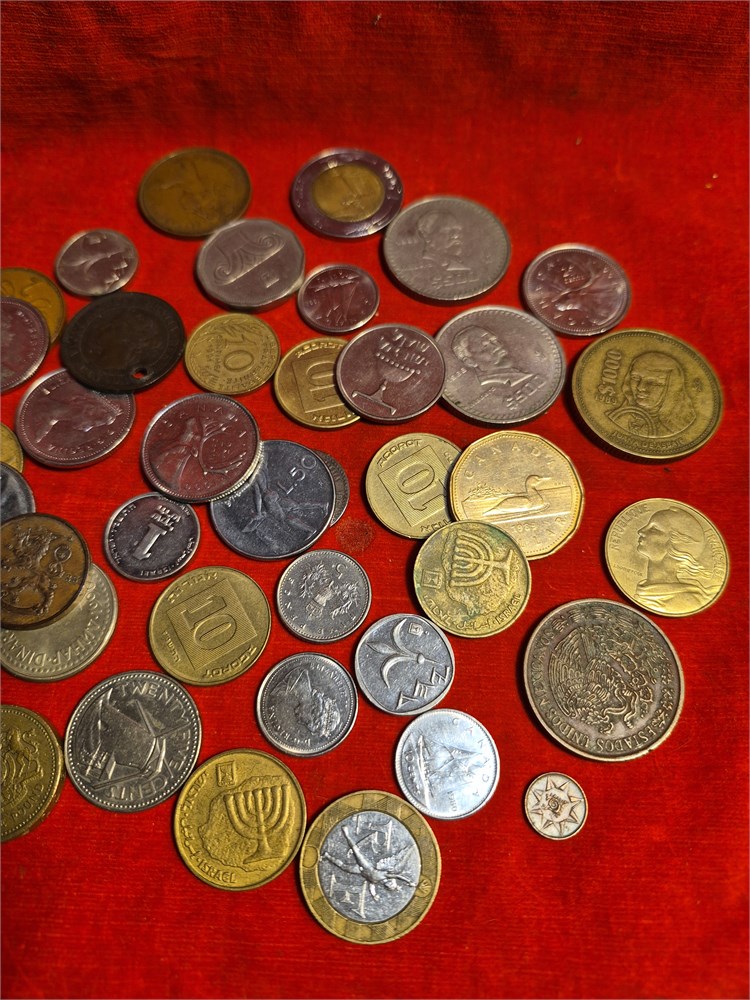 Nice lot of foreign coins includes coins from israel, canada, mexico, england and other countries.