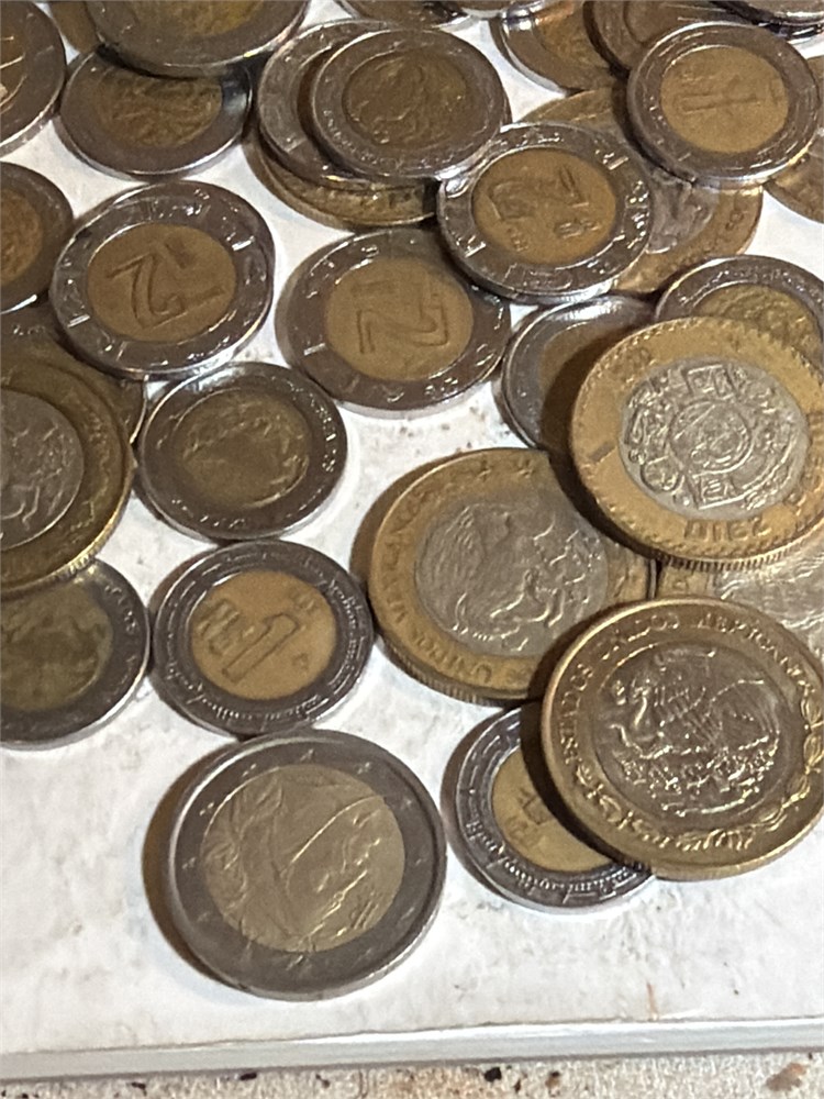 Mexican pesos 56 coins $10 pesos one dollar pesos beautiful assortment
