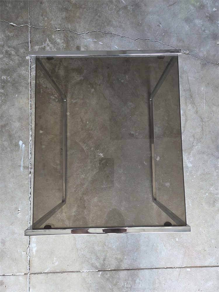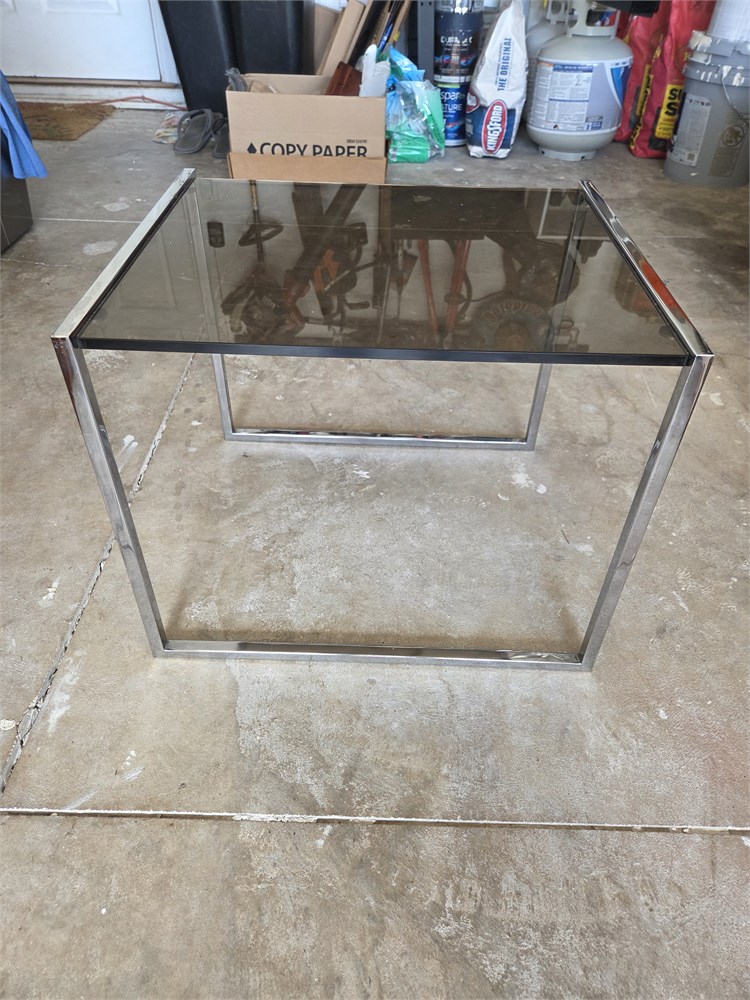 17 l x 20w x 16 h smoked glass and Chrome side table, excellent condition (s)