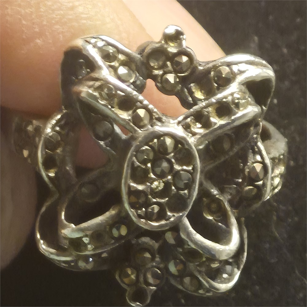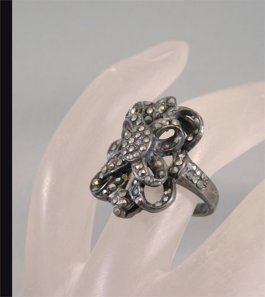 Vintage Art Deco Sterling Silver Marcasite Bow Ring [v]