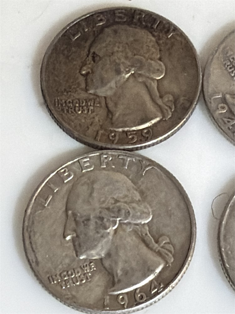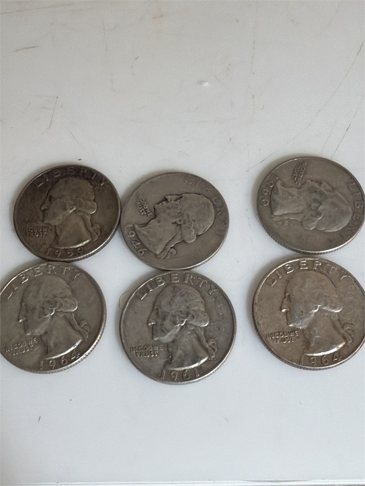 Six total 1964, 1959 and 1961 Silver quarters all collectible