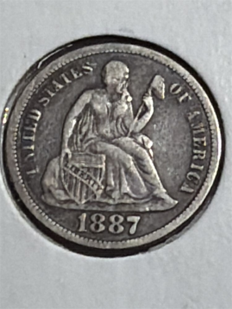 1887 LIBERTY SEATED DIME ALMOST UNCIRCULATED Absolutely a gorgeous piece. Everything’s intact.