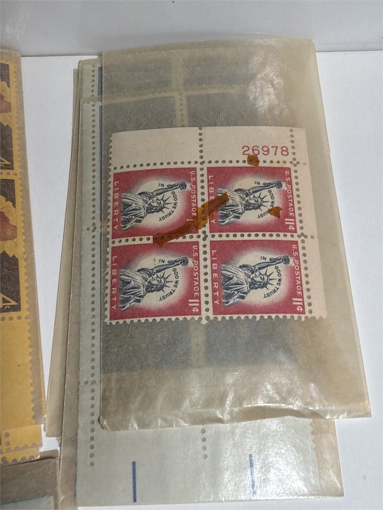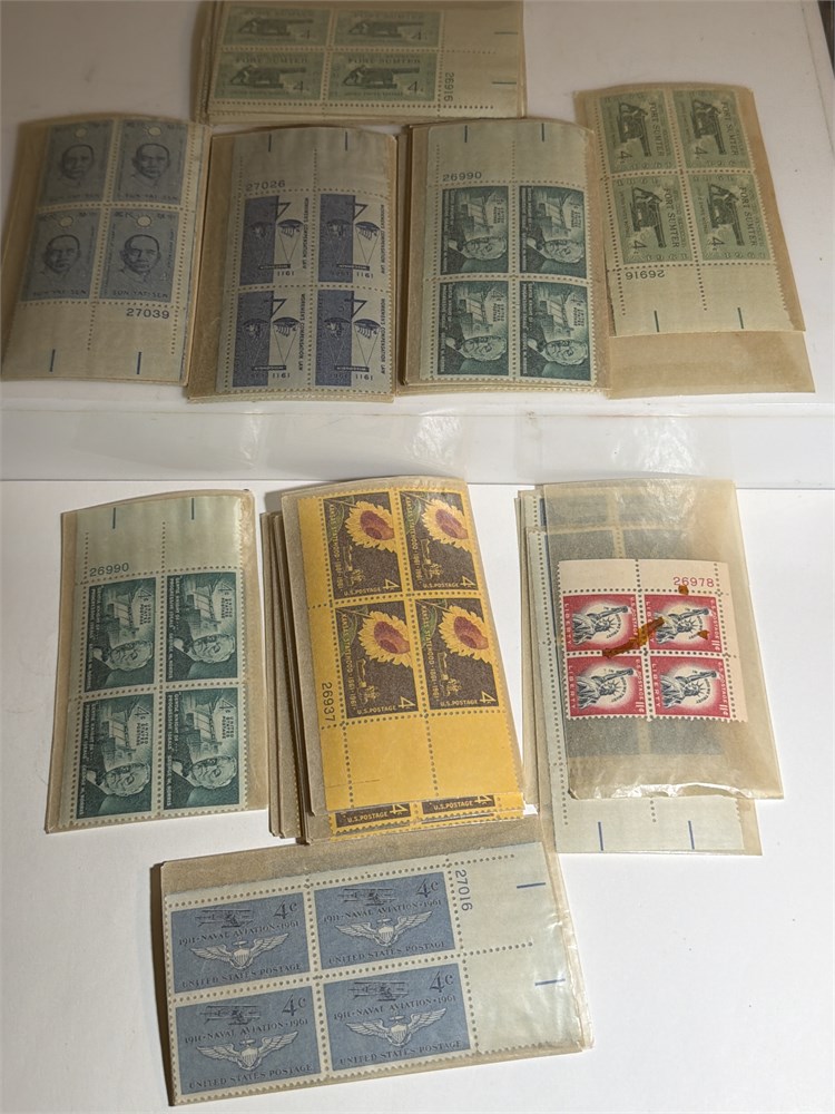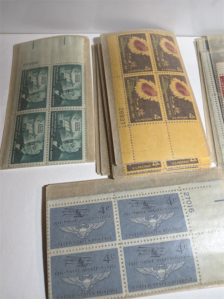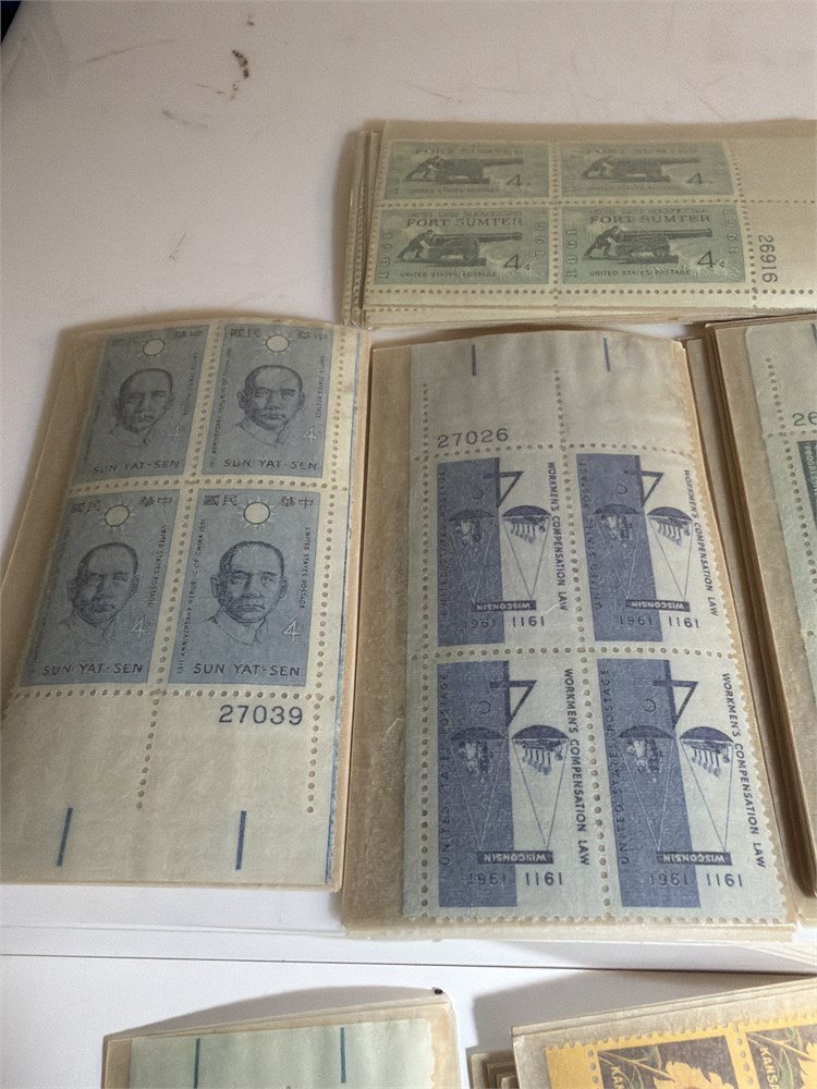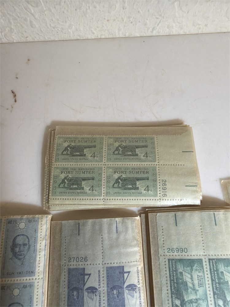 Vintage uncirculated four cent stamps, Kansas City statehood naval able aviator George, W Norris, Workmen’s Compensation, LAW and Fort Sumter There’s hundreds of stamps uncirculated