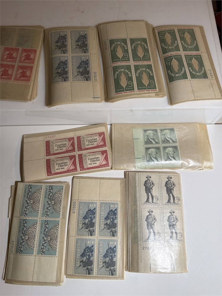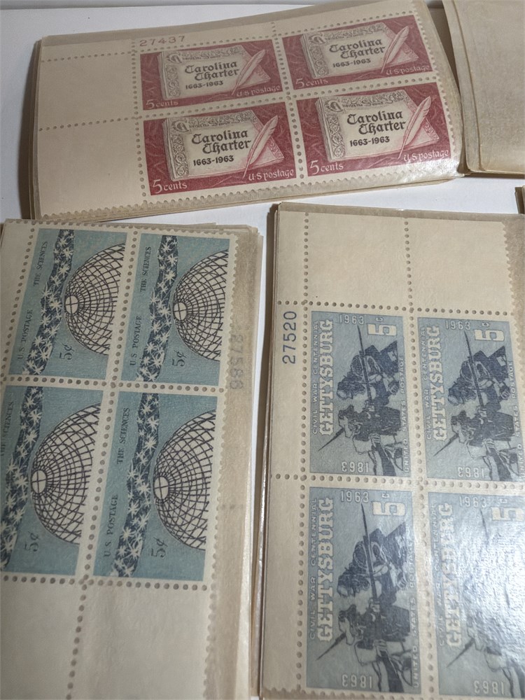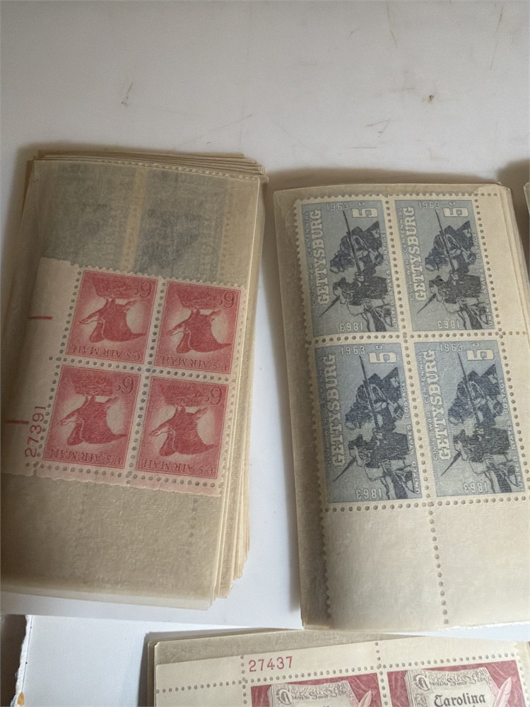 Over hundreds of uncirculated postal stamps by centers one centers, Gatesburg 1963 the science fair five cents stamps US air mail, stamps food for peace stamps, and much more. There are hundreds of uncirculated.