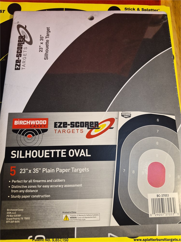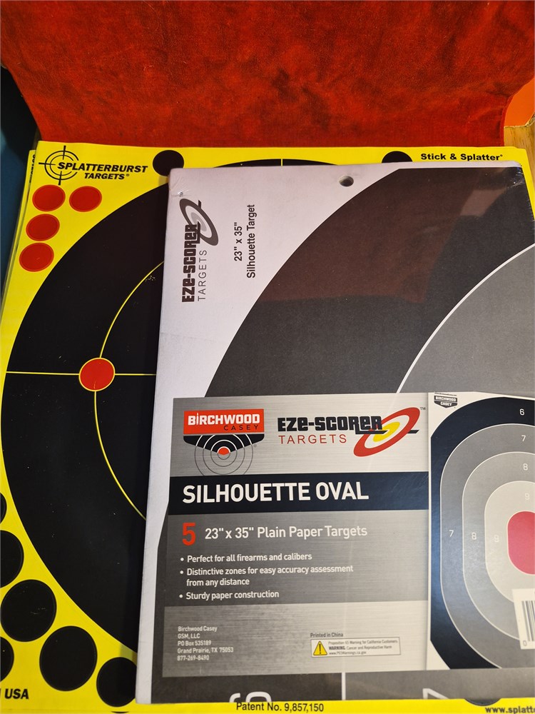 Targets for shooting. One new package of 5 23"x25" targets.  Plus two additional splatterburts targets.