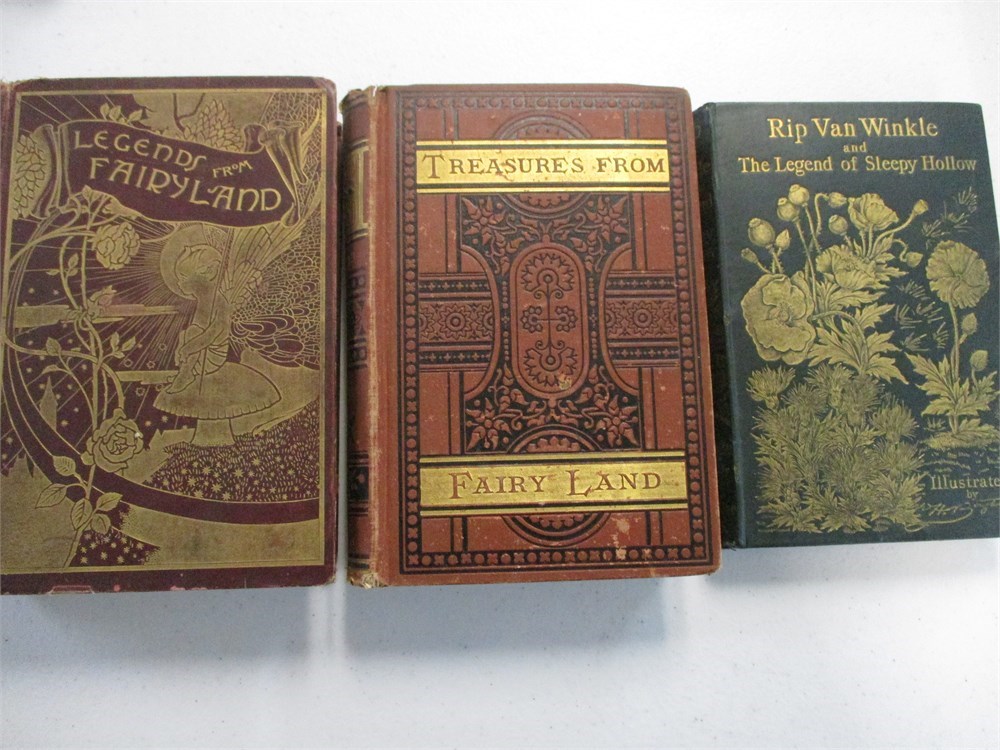 3 Book Lot ;Rip Van Winkle & The Legend of Sleepy Hollow, Treasures from Fairy Land & Legends from Fairy Land.  Very nice collection with gilt embossing on cover and spine.  The Fairy Land books have spine issues.