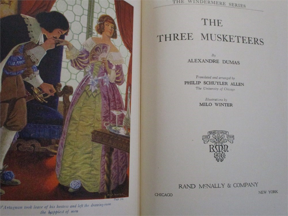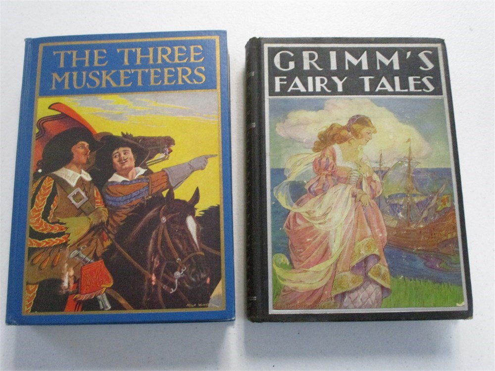 2 Book Lot;   Grimm's Fairy Tales & The Three Musketeers.  These Vintage books are in very good condition.  The cover and spines are in tact with nice colors, graphics and embossing.  The pages are clean just some normal yellowing.