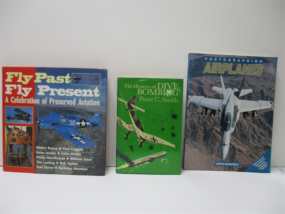 Lot of 3, Vintage Books on Aviation.  Dive Bombing, Preservation of Aircraft and Airplane Photography and the Art of Aviation.  All in very good gently used condition.