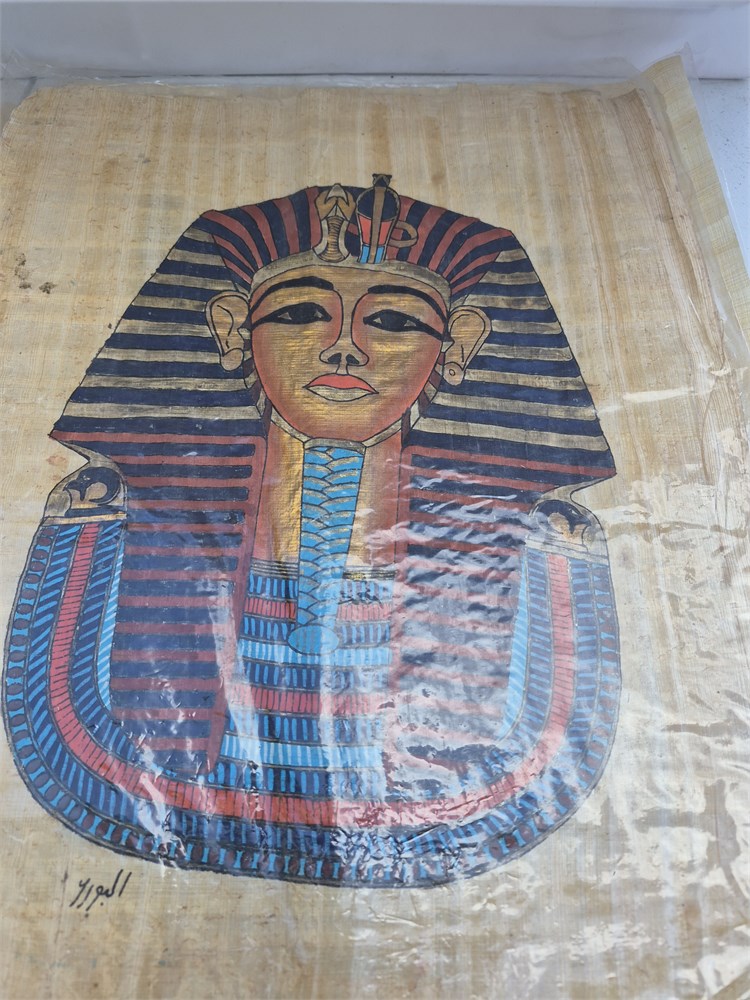 Three Vintage Beautiful Egyptian Large 16 inch by 13 inch  Papyrus Hand Painted Gold