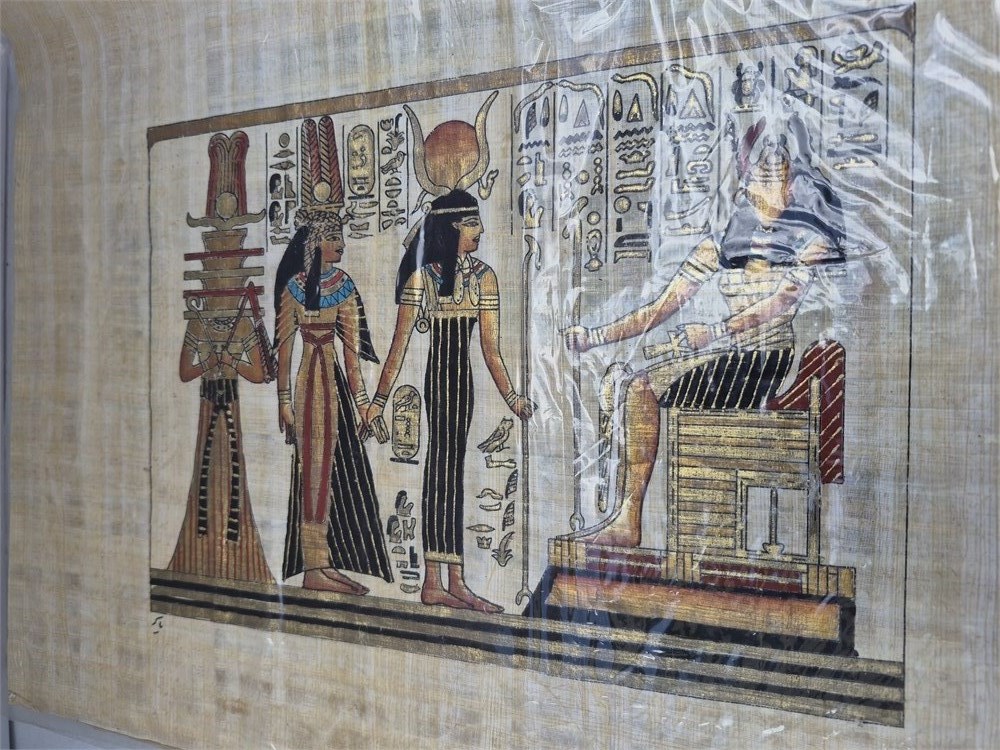 Three Beautiful Egyptian Large 16 inch by 13 inch Papyrus Hand Painted Gold (LB