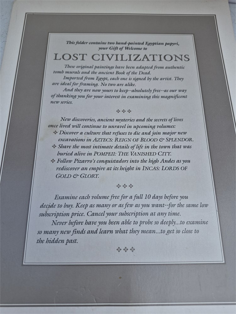 The Lost Civilization Papyrus Paper Paintings. Each measures 8"x7"