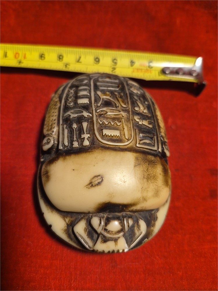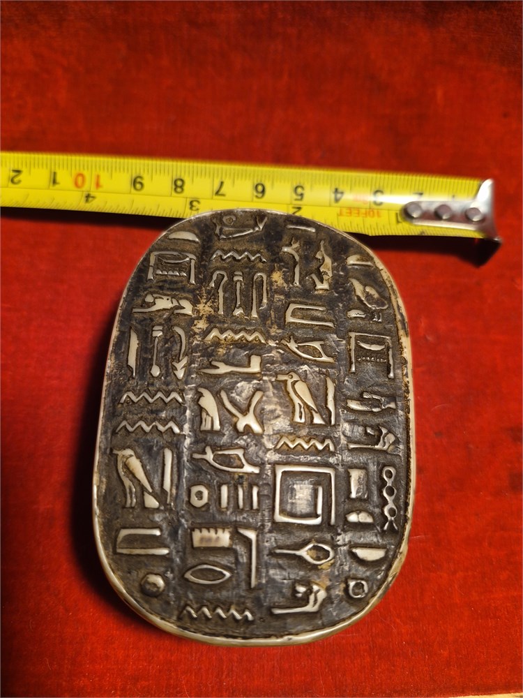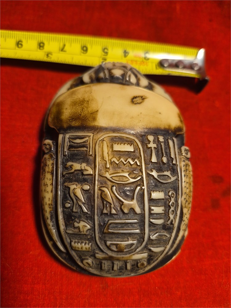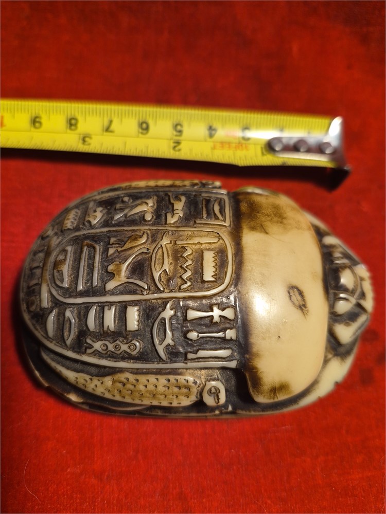 Egyptian Brown  Scarab with Hieroglyphs. Measures 3" long.