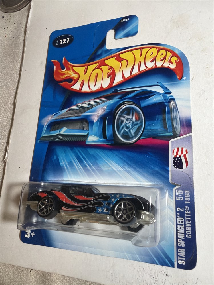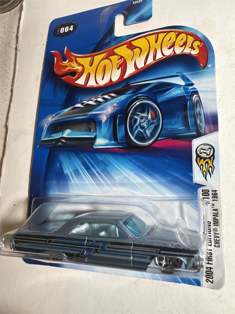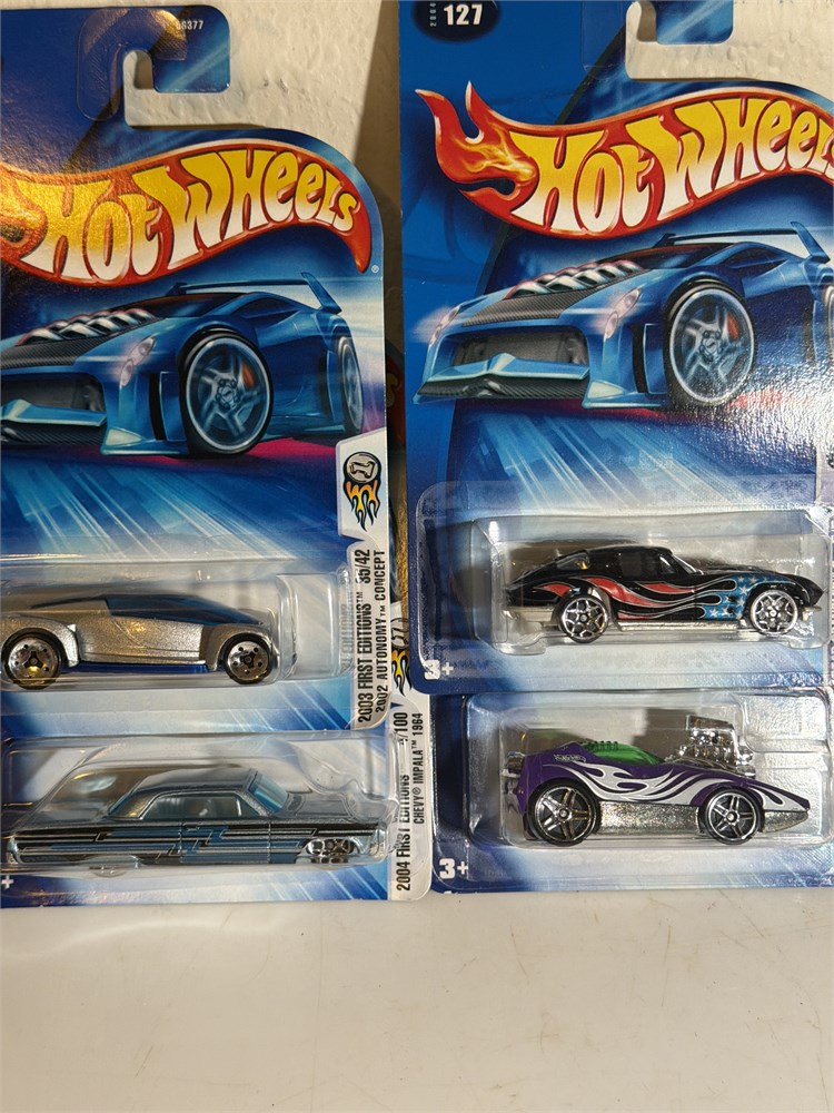 2004 first edition Chevy impala in 1964, 2004 first edition splitted image, 2003 first edition 2002 concept and star thing or banner Corvette 1963 five out of five