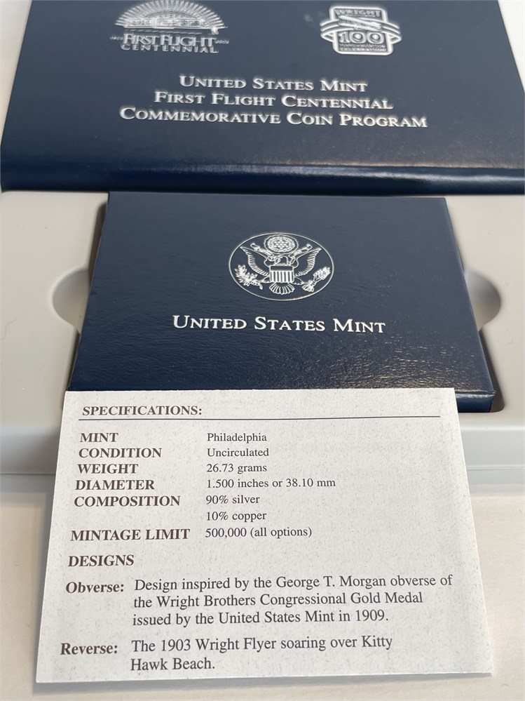 2003 First Flight Centennial Commemorative Silver Dollar Coin, Wright Brothers, 90% silver, 26.73 grams