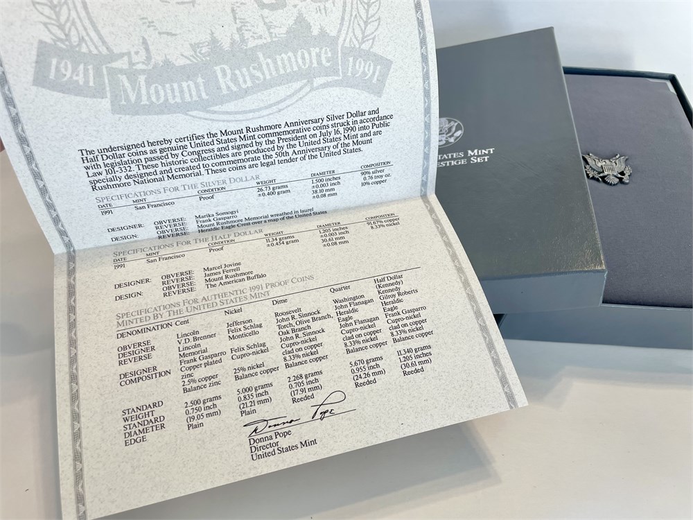 1991 Mount Rushmore 50th Anniversary Prestige Set with Silver Dollar