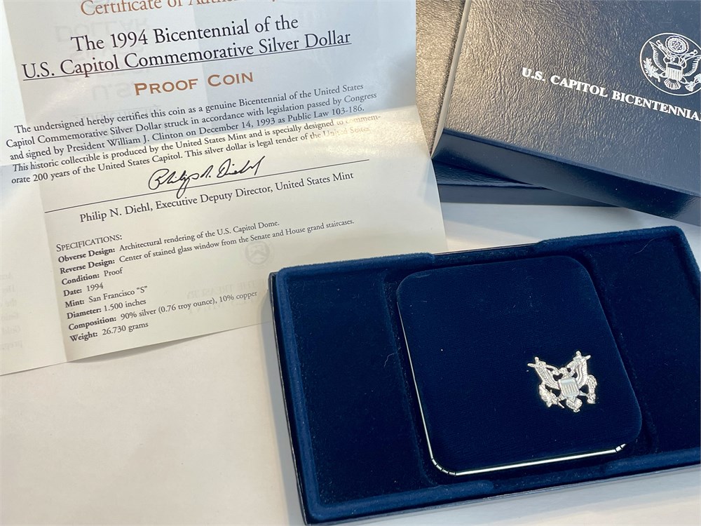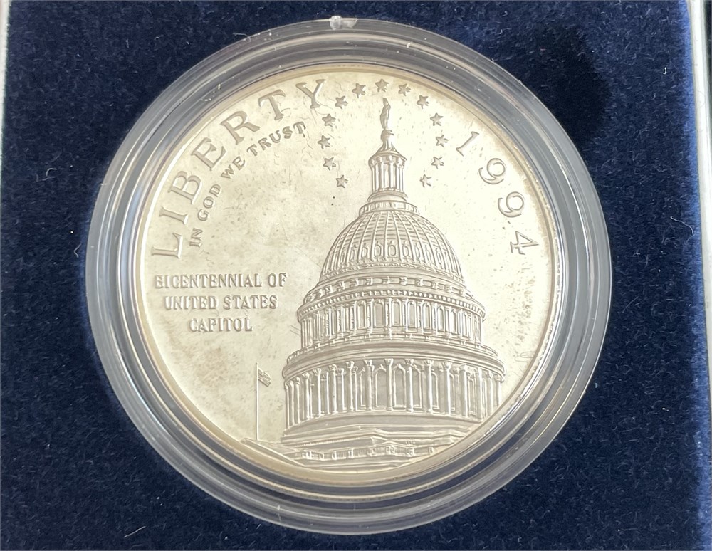 1994 U.S. Capitol Bicentennial Proof Silver Dollar, commemorating the capitol's anniversary, 90% silver