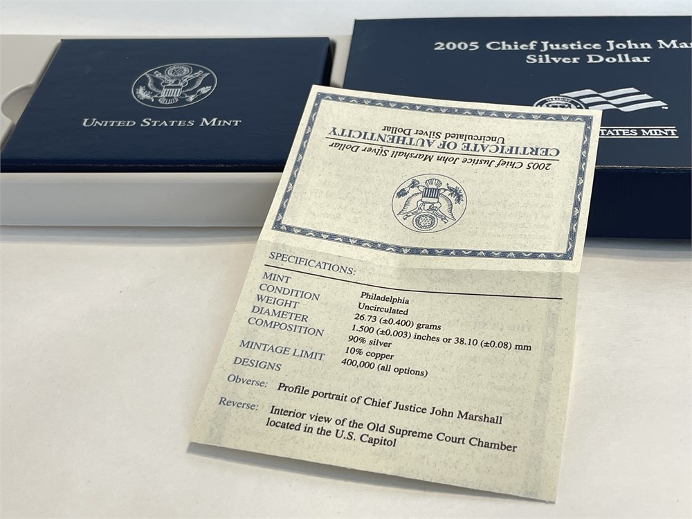 2005 Chief Justice John Marshall Silver Dollar Proof Coin, 90% silver, 26.73 grams