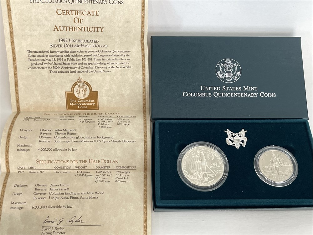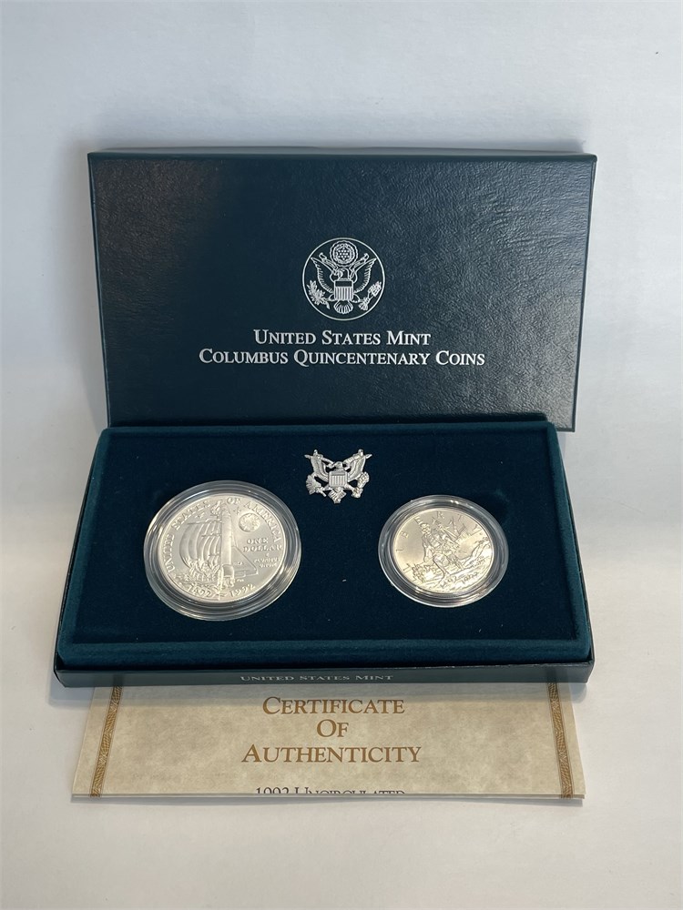 1992 Columbus Quincentenary Silver Dollar and Half Dollar Set
