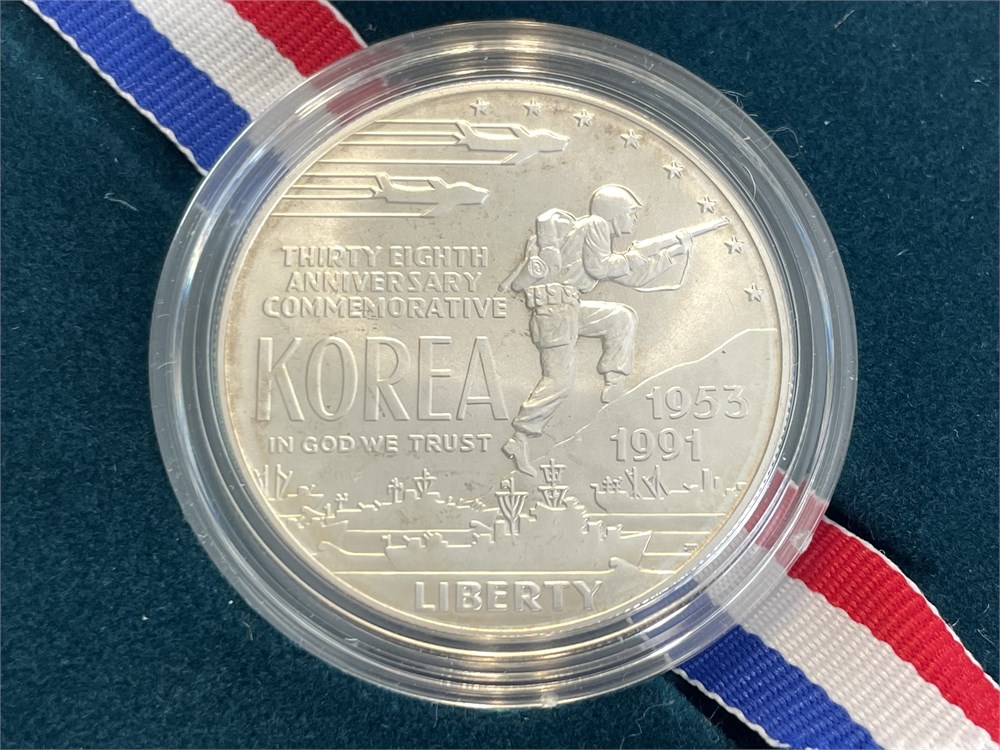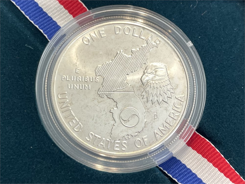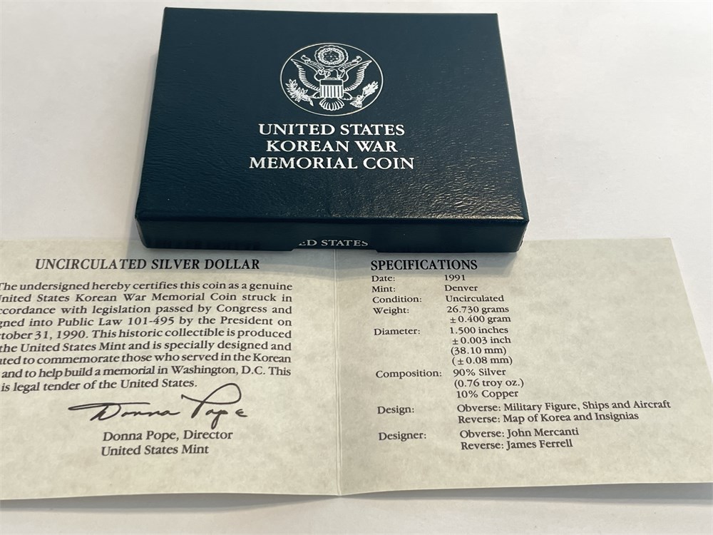 1991 Korean War Memorial Proof Silver Dollar Coin, 90% silver, 26.73 grams
