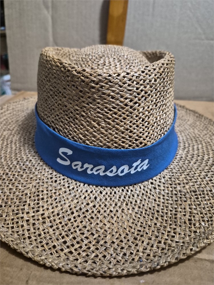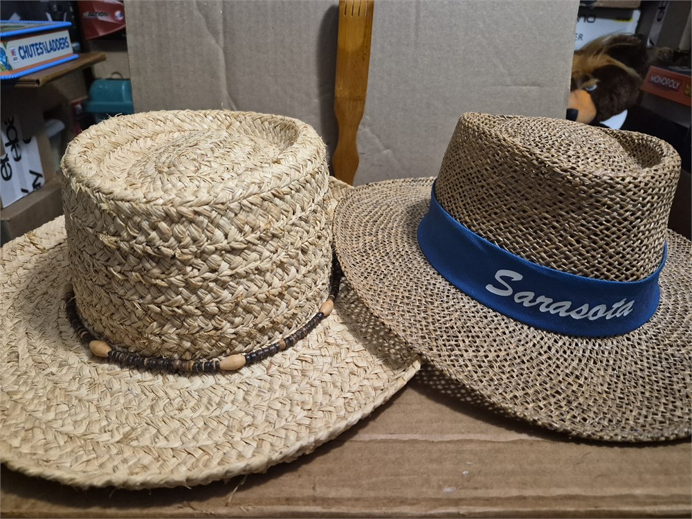 Pair of straw hats. Sarasota hat has small hole on top. Hat is made by Peter Grimm. The second hat is in nice condition and made by Raffia sz S/M.