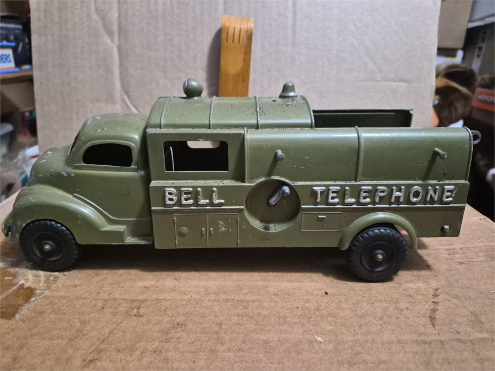VTG Metal Hubley Bell Telephone Kiddie Toy Utility Truck Green #504 Made In USA