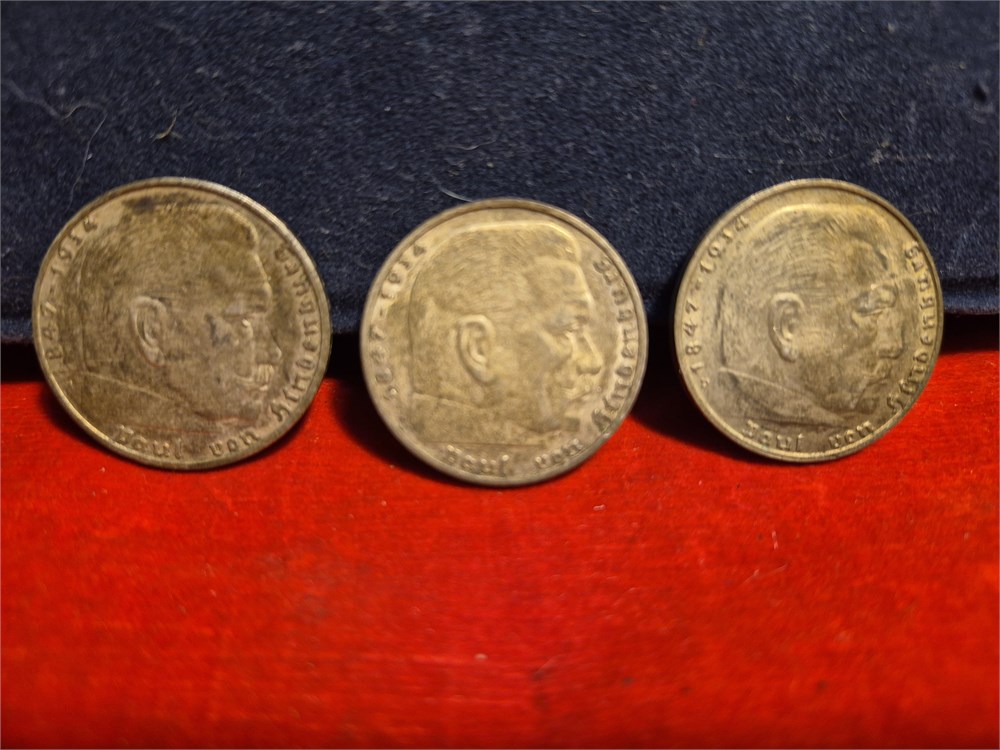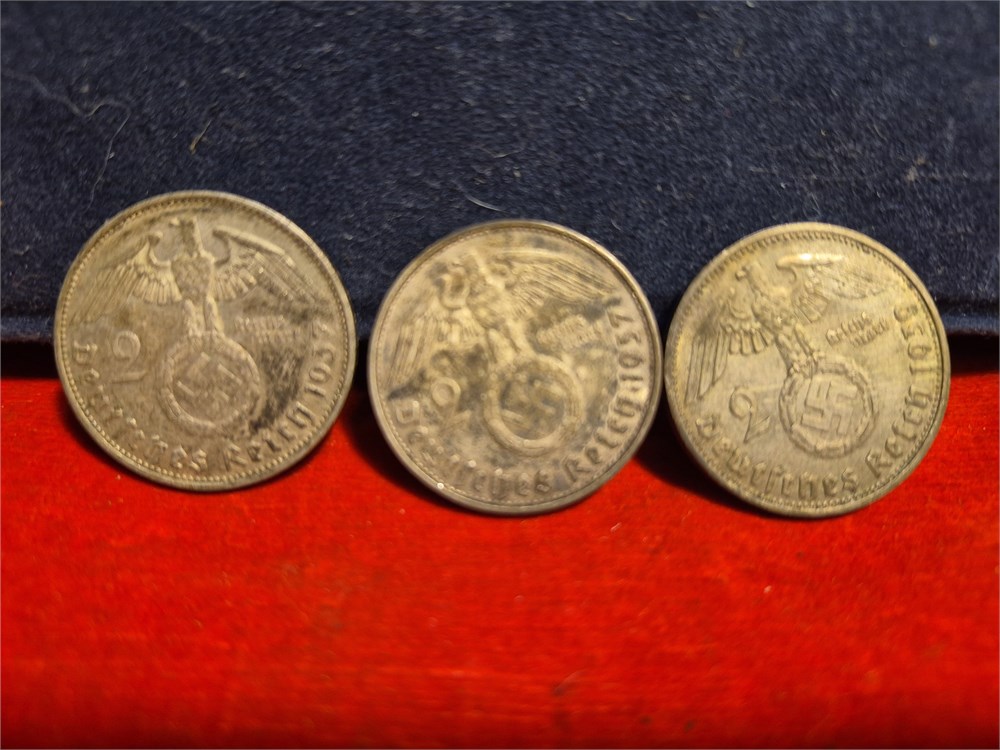 (3) German WWII 2 Reichsmark SILVER Genuine Coin (1936-1939) Third Reich WW2