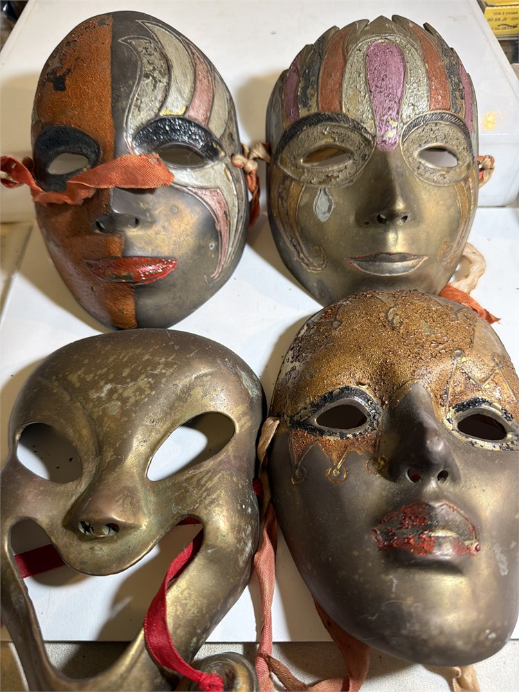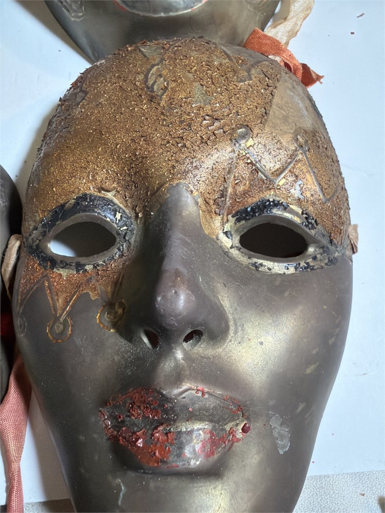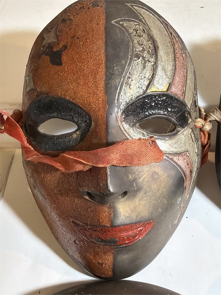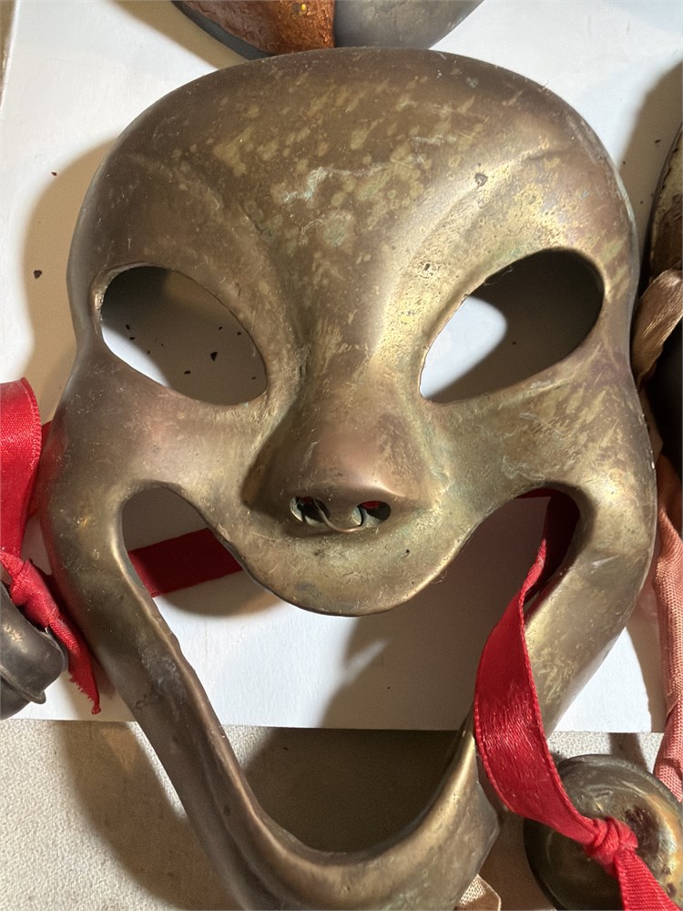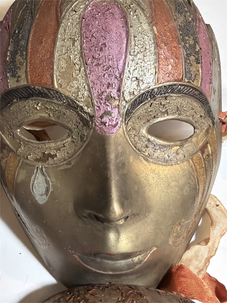 Solid Brass Hand Painted 6.25 x 4.75 Face Mask Wall Hanging Decor India(LC)