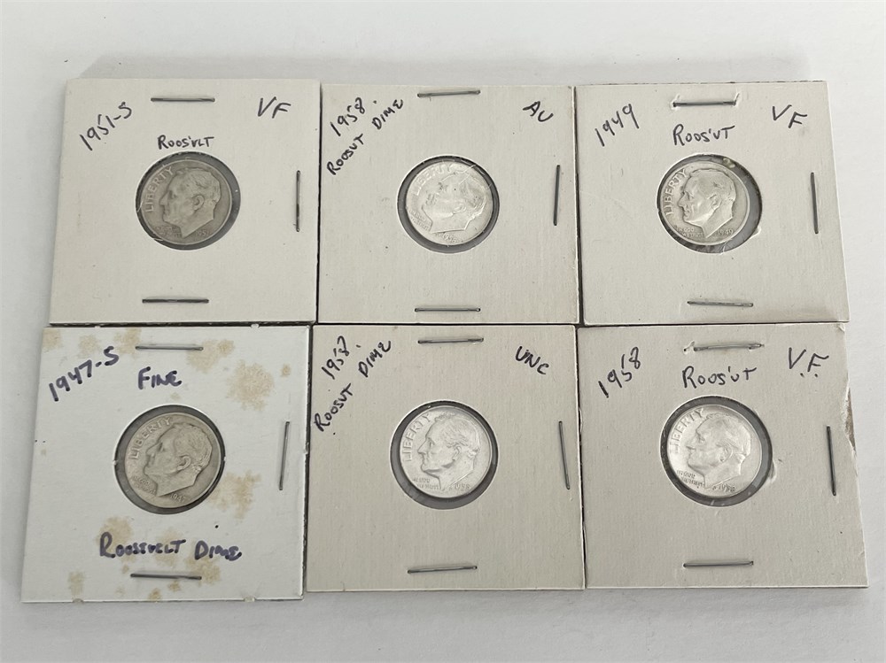 6 Assorted Roosevelt Silver Dimes