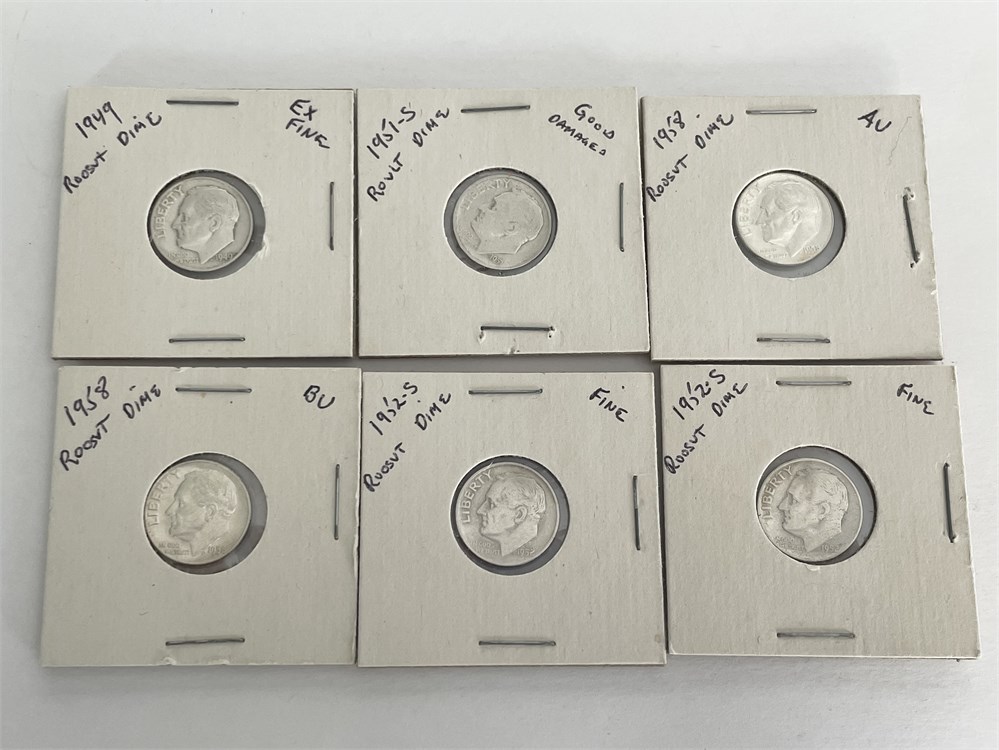 6 Assorted Roosevelt Silver Dimes