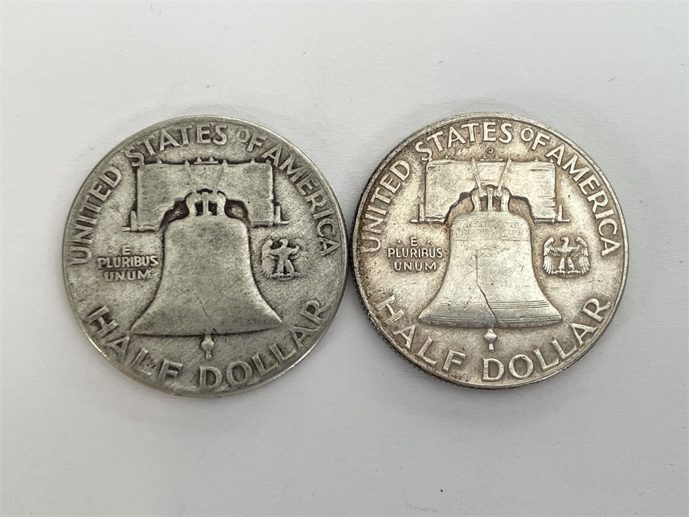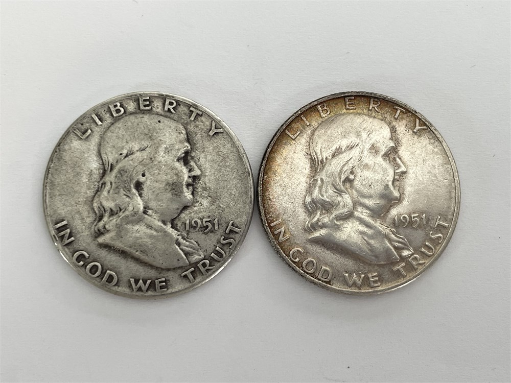 2 Franklin Silver Half Dollars: 1951 P and 1951 D