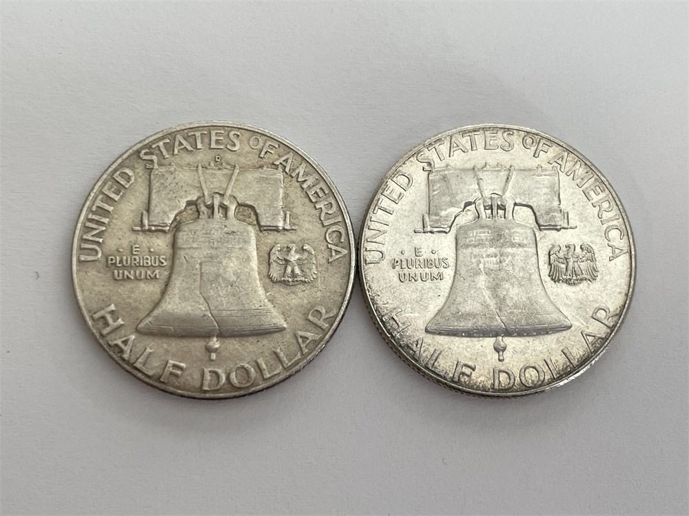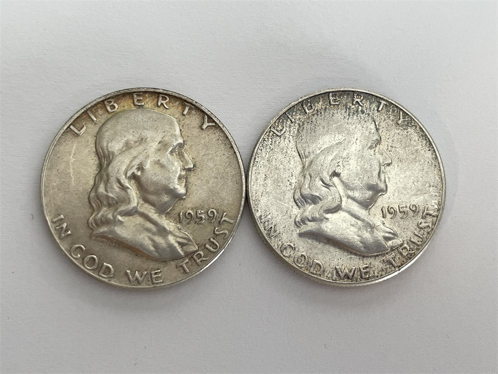 2 Franklin Silver Half Dollars: 1959 P and 1959 D