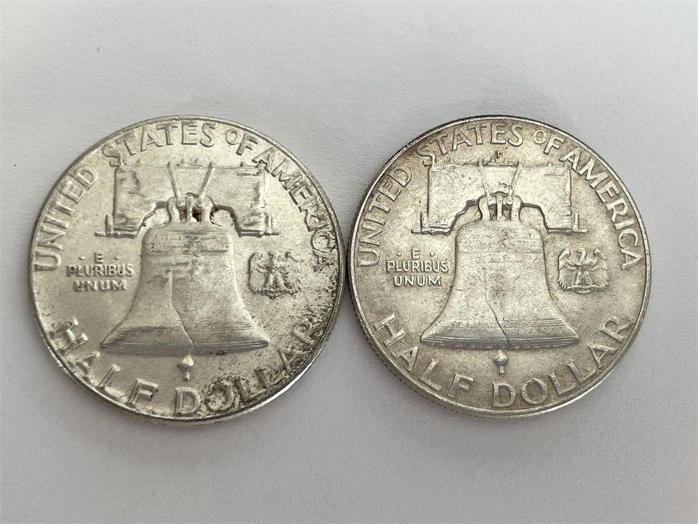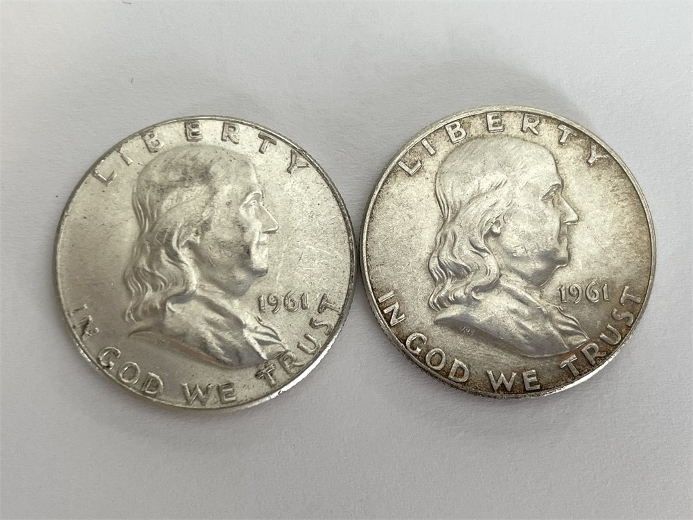 2 Franklin Silver Half Dollars: 1961 P and 1961 D