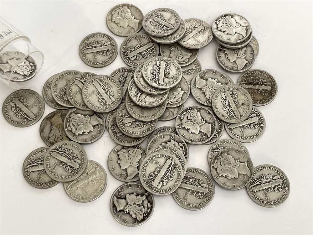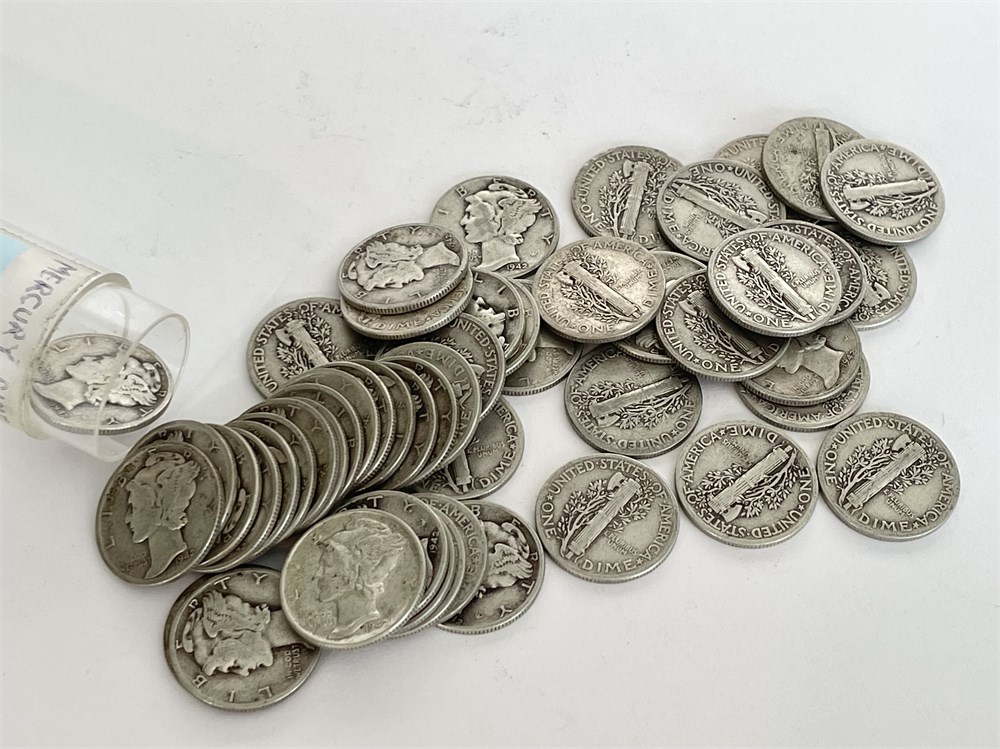 51 Mercury Silver Dimes, in an estate tube labeled with various dates but from a quick assessment these look like all are 1942.