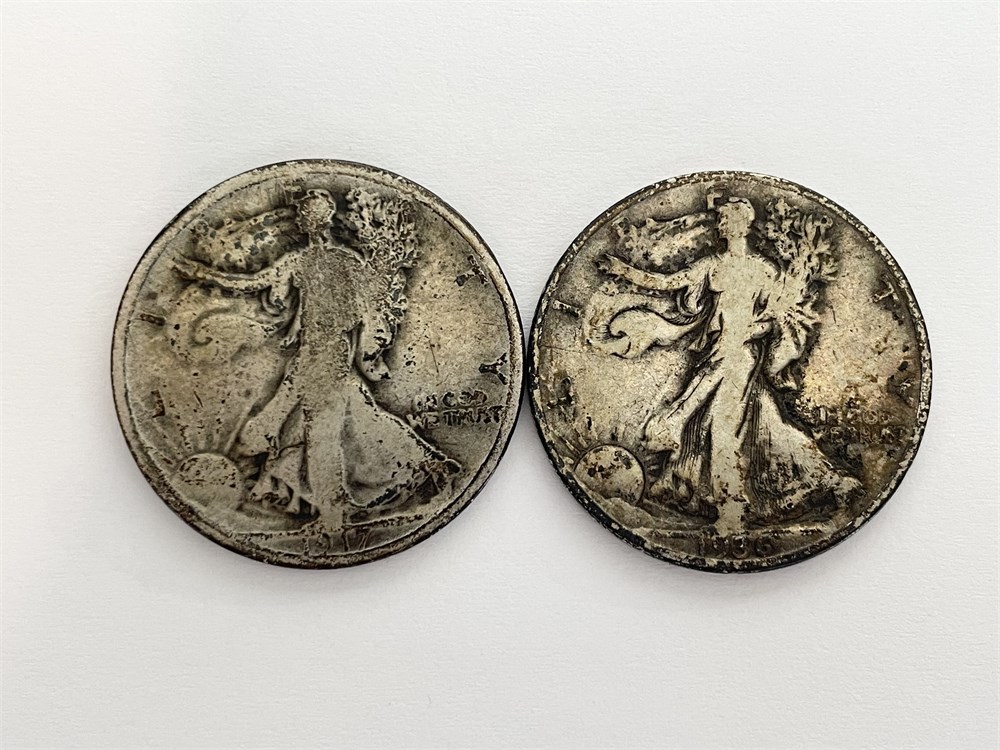 2 Walking Liberty Silver Half Dollars: 1917 and 1934