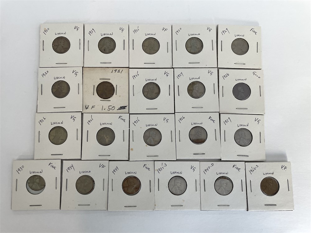 21 Carded 1910's U.S. Wheat Cents