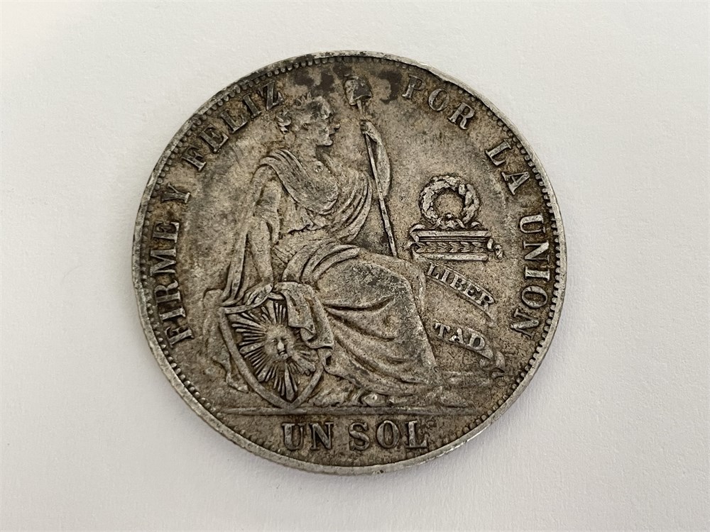 A Peruvian Un Sol Coin, 90% Silver.