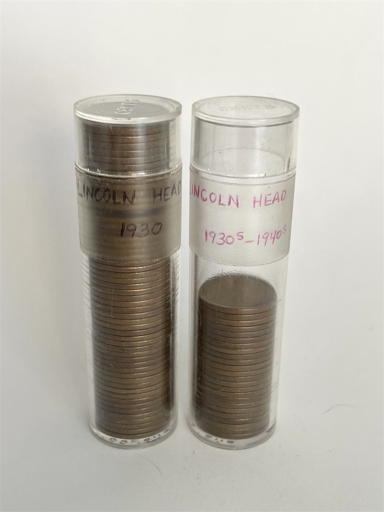 2 Tubes of Wheat Pennies: 1930's-40's  - One tube labeled specifically 1930.