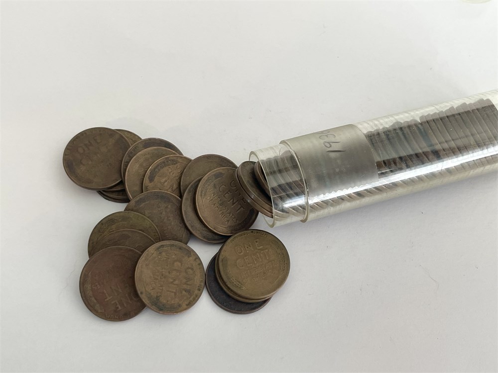 * The tubes of pennies are unchecked.  Labels with dates were original to the estate.
