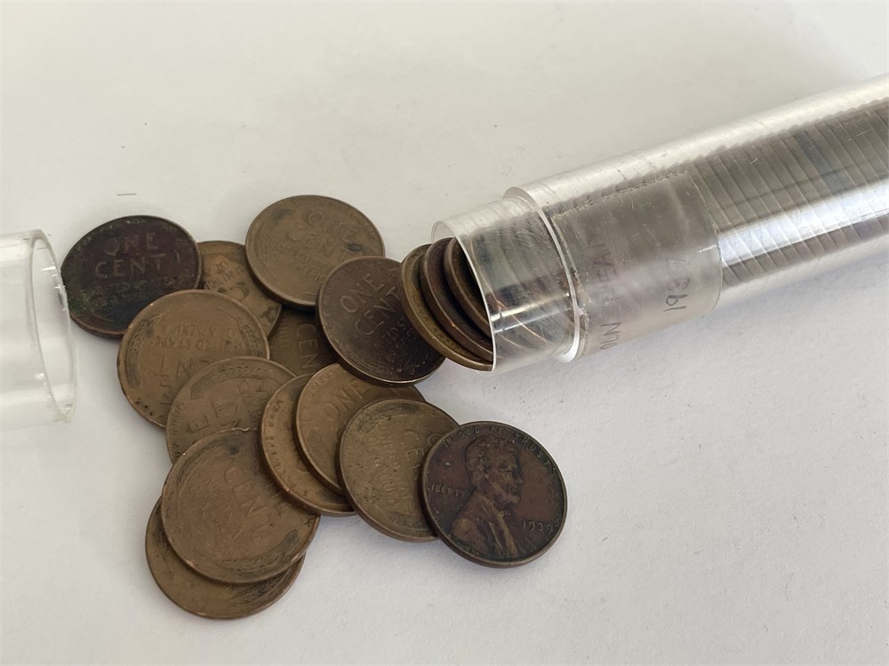 * The tubes of pennies are unchecked.  Labels with dates were original to the estate.