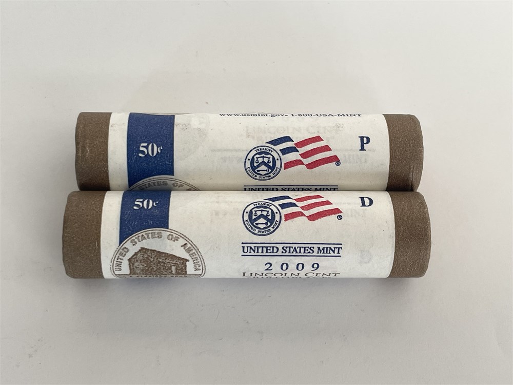 2 Mint Rolls of 2009 Lincoln Cent "Birthplace" Pennies, P & D